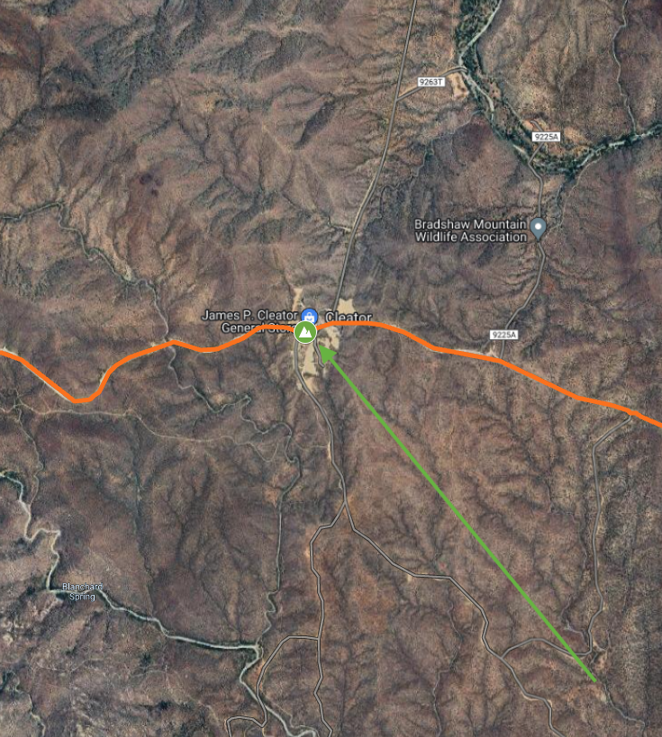 Example: An example of an extreme 21-point checkpoint far off the official route. The competitor must safely exit the route and ride or walk through the checkpoint with their smartphone while running the rally app. These types of checkpoints are usually at significant locations.